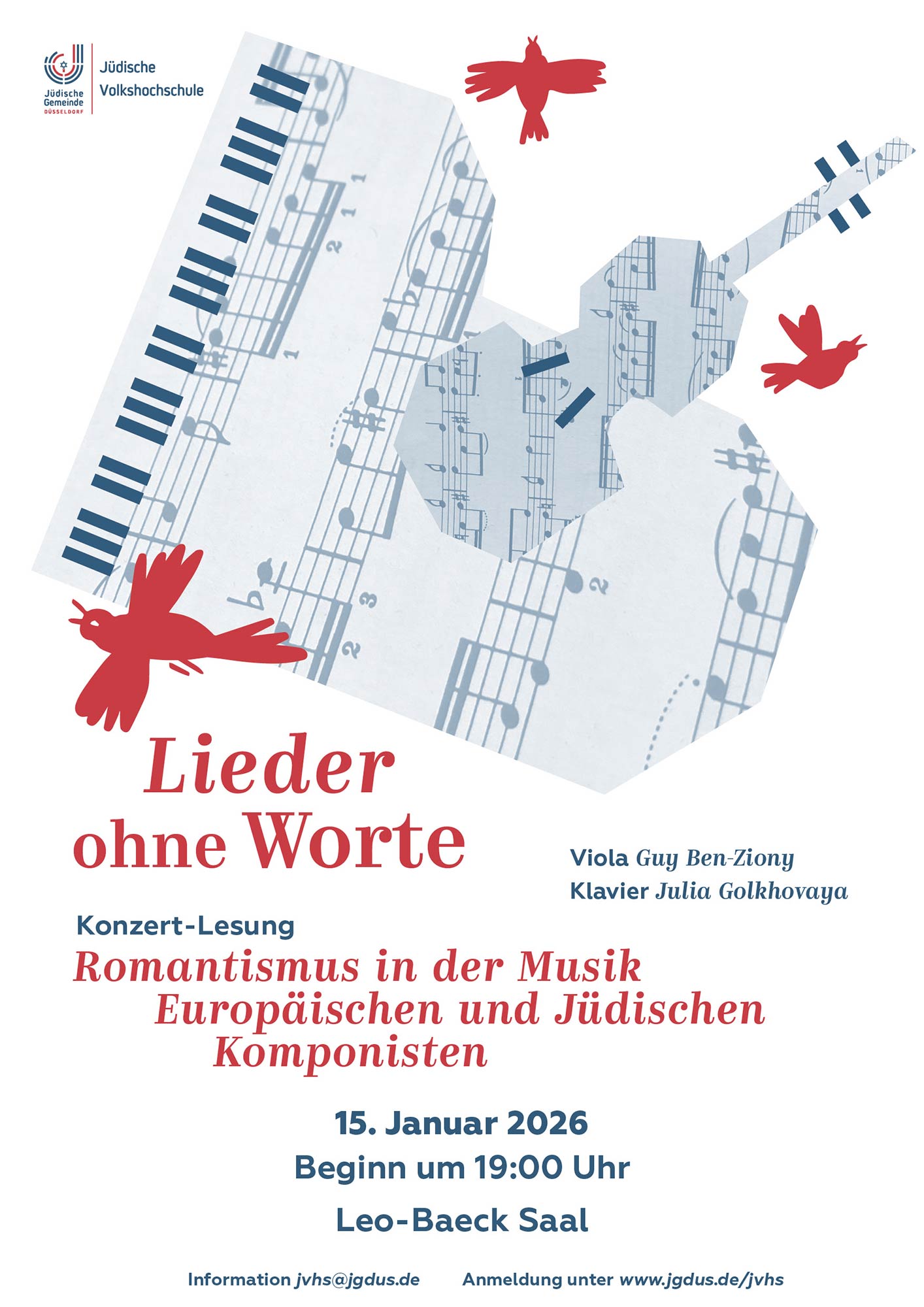 Ein besonderer Abend zwischen Musik und Wort: Die Konzert-Lesung „Lieder ohne Worte“ lädt zu einer Reise in die Klangwelt der Romantik ein und verbindet Werke europäischer und jüdischer Komponisten zu einem atmosphärischen Gesamterlebnis.